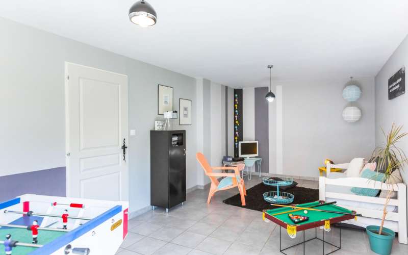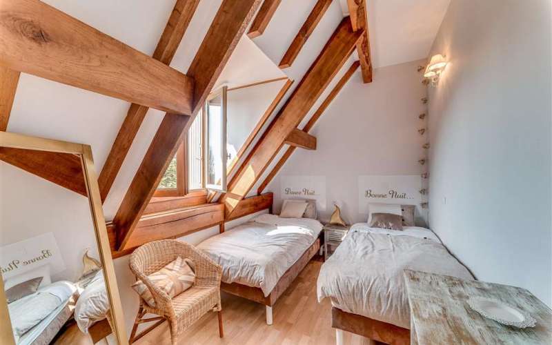 Beautiful, entirely renovated country house, located on a hill in a typical Plaine de la Bièvre village. 3000m² garden, swing, multi-sports clay games area (tennis and football). Ground floor: large lounge and dining area with fireplace, TV, large balcony, kitchen, Bdr. 1 (double), washroom, WC, garage. 1st floor: mezzanine, piano, small lounge, Bdr. 2 (in the tower) 25m² and round bed), bathroom, WC, Bdr. 3 (2 singles), Bdr. 4 (3 singles). Garden level: Bdr. 4 (2 singles), washroom, WC, games room, table football, training bike, lounge, games, terrace, garden furniture, barbecue. Central heating, garage. Nearby: numerous nature-based activities, water park, Chambarans forest