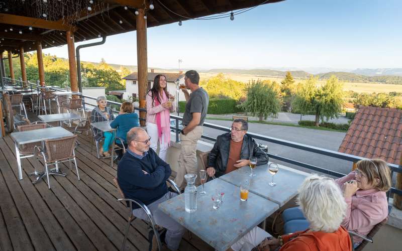 Situé au cœur du village , dans une bâtisse chaleureuse, notre restaurant vous accueille dans un cadre confortable, dotée d'une magnifique vue panoramique, propice à la découverte des saveurs associées et produits de notre territoire.