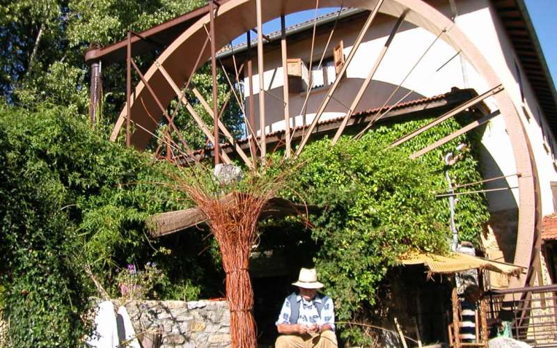 Ce lieu semble s'adresser aux spécialistes de la force hydraulique avec la roue à augets légèrement courbes dont les dimensions sont impressionnantes : 10 mètres de diamètre sur environ 1 mètre de largeur, entraînée par effet de vases communiquants.