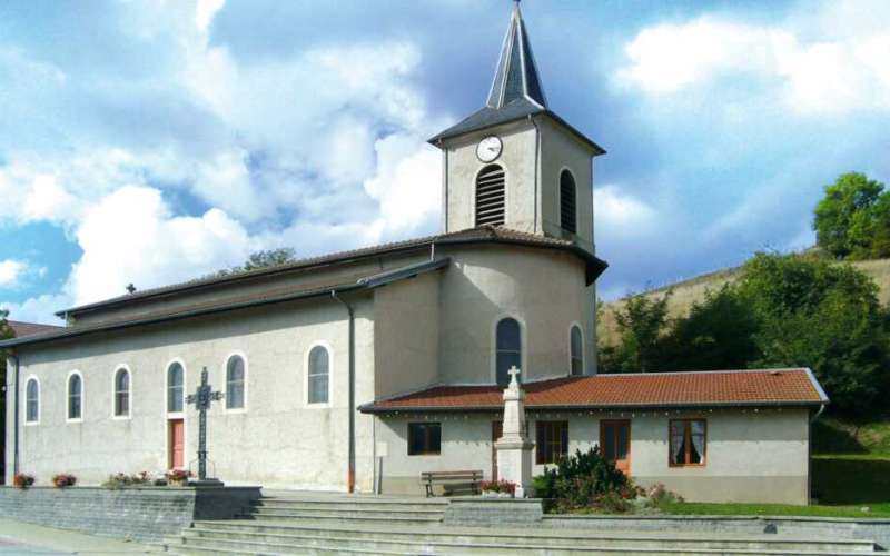 Elle fut construite de 1846 à 1848 en lieu et place d’une chapelle qui datait du XVIIe siècle. Sa décoration intérieure de couleur vive, plutôt agréable, date de 1912. Dans ce lieu de culte, une frise originale en lettres capitales orne tout le tour du haut de l’édifice avec ces inscriptions :
