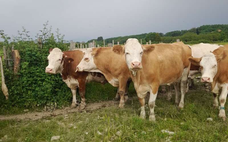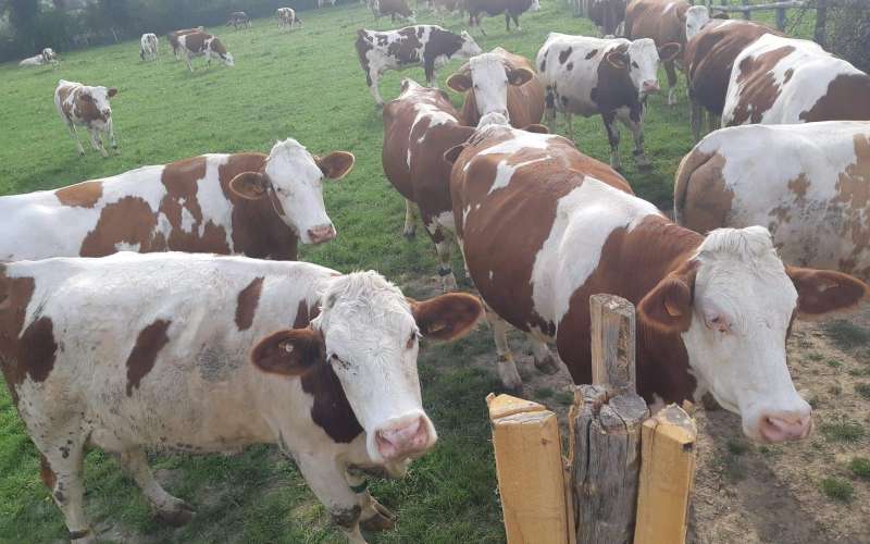 Ferme familiale au cœur du village avec 60 vaches laitières nourries exclusivement de notre production (blé, maïs...), transformation d'une partie de notre lait en fromages.