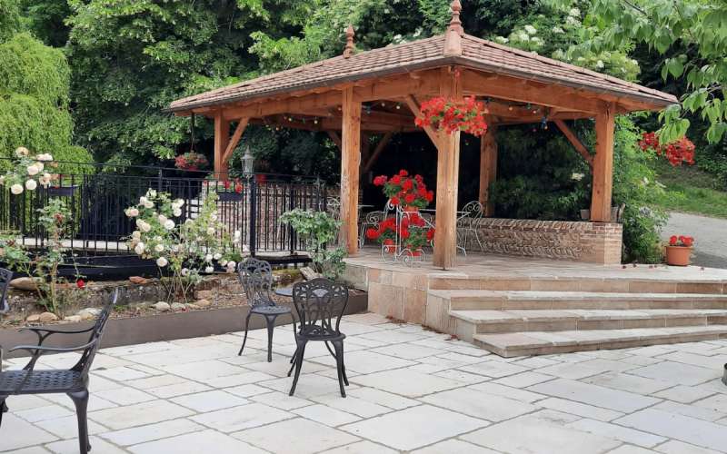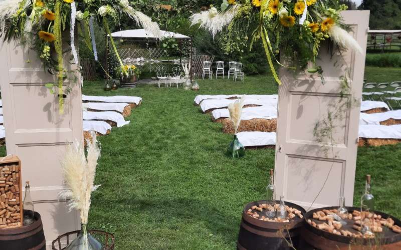A l’extérieur : Plateforme pour célébrations sous chapiteaux, ou sous tonnelles, organisation de festivités en plein air tels que mariages, baptêmes, anniversaires…
