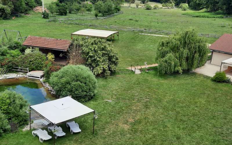 Loisirs (pingpong, fléchettes, piscine biologique avec pool house, animaux de la ferme)