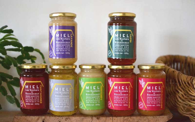 Vente de miels : printemps, acacia, châtaignier, lavande, sapin, Fleurs du Dauphiné. Vente à la ferme les mardis de 17h à 19h et les vendredis de 8h à 10h