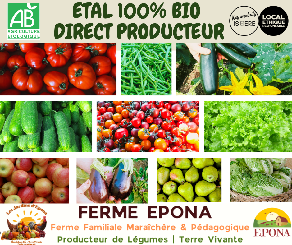 EPONA, c'est une ferme familiale maraîchère et pédagogique située dans le Nord Isère sur la commune de Chatonnay. Nous produisons des légumes de saison dans le respect de la terre et accueillons les familles dans le cadre d'ateliers nature/pédagogique.
