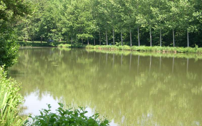 Dans un cadre champêtre idéal, cet étang ombragé de 0,8 hectares est agréable et facile d’accès, avec un parking et une maison forte à proximité (ne se visite pas)