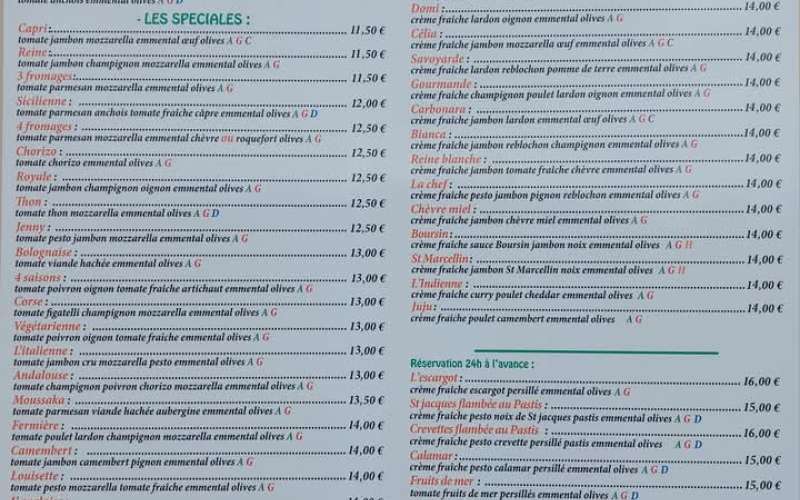 Service sur place de 18h à 20h30 – Pizzas uniquement, réservation conseillée. Vente à emporter jusqu’à 21h.