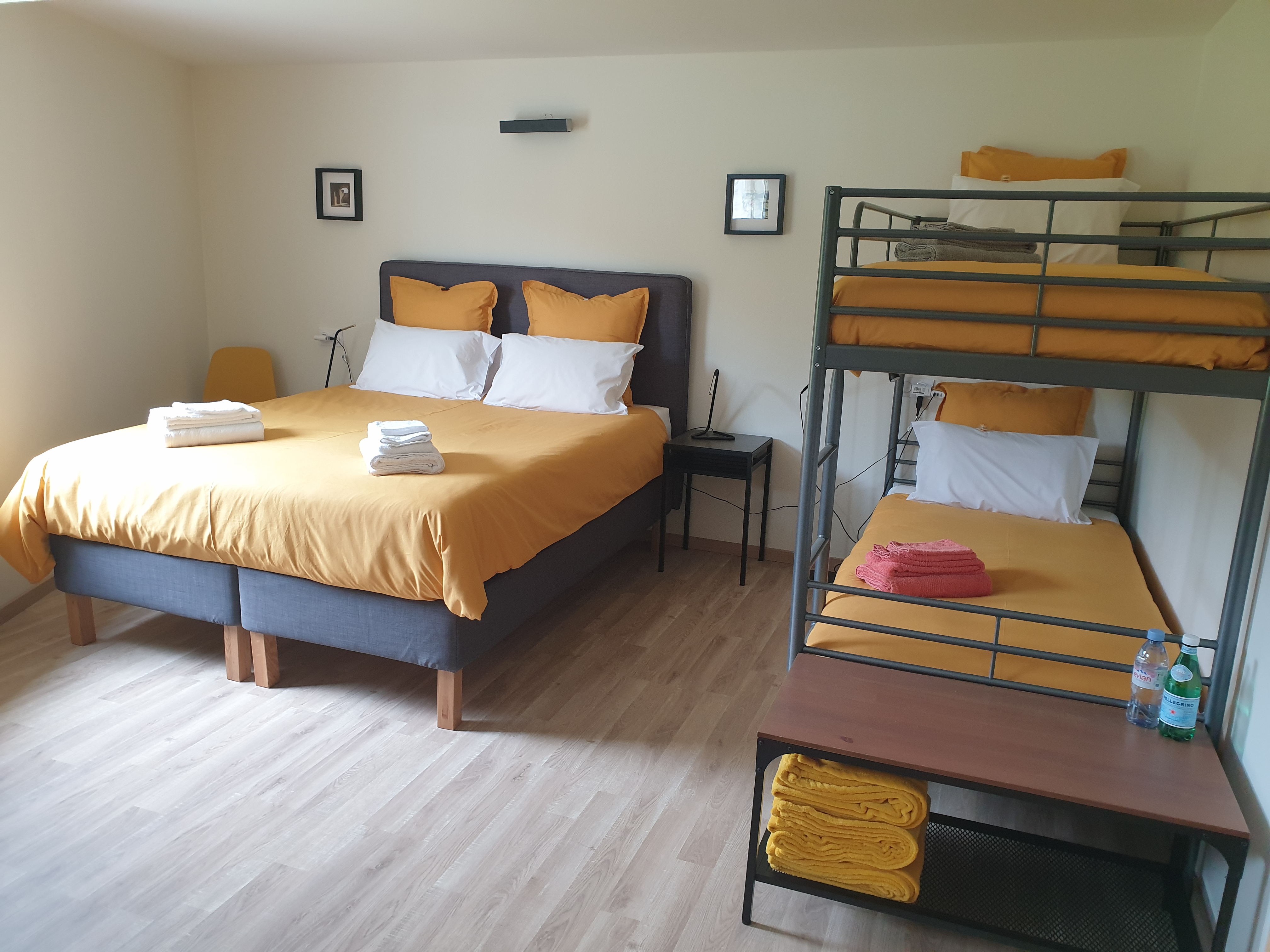 LA PASTORALE GOURMANDE Une maison de vacances au rez-de-chaussée avec une chambre pour quatre personnes et un canapé convertible pour 2 personnes supplémentaires. Le gîte est accessible aux personnes à mobilité réduite !