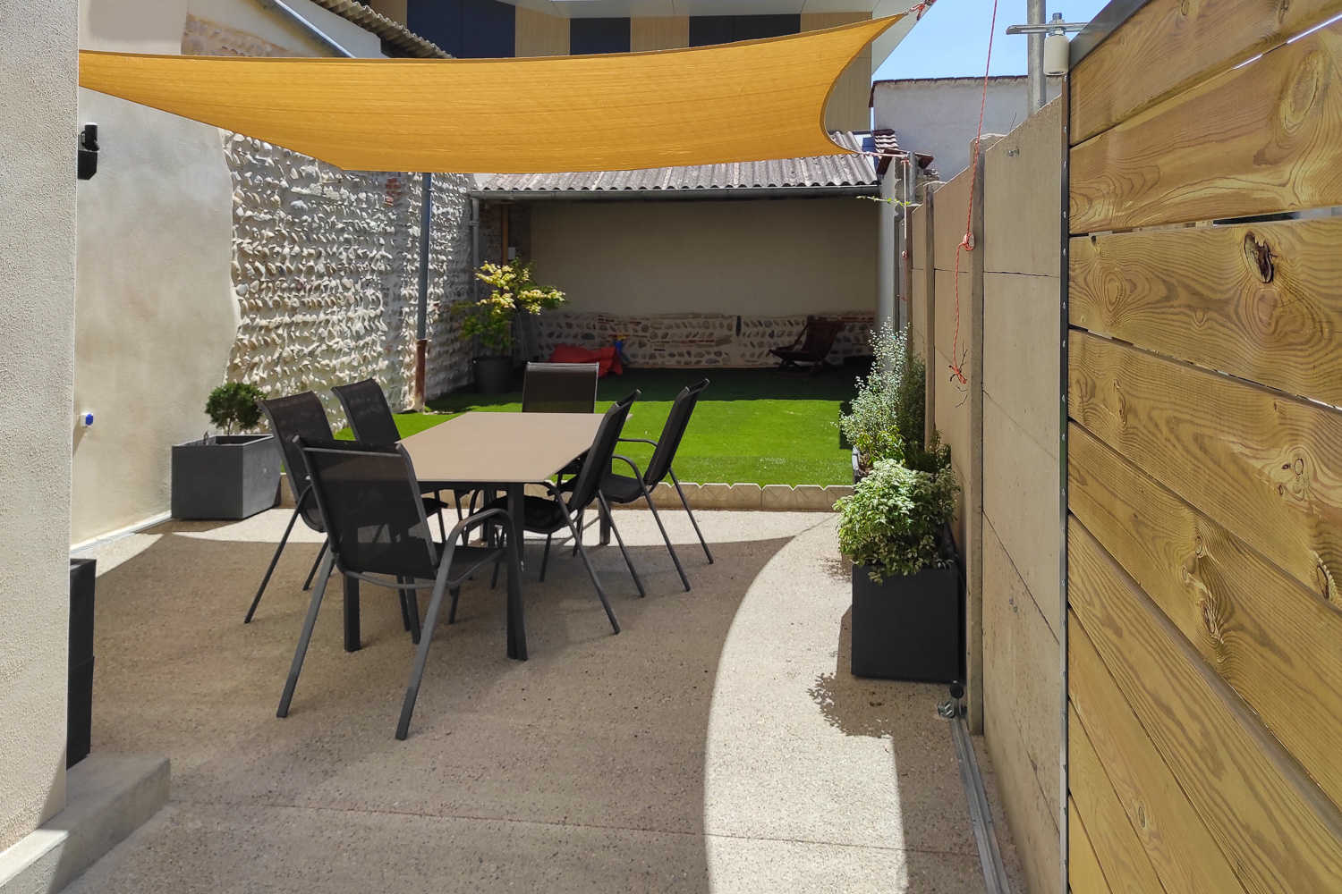Maison de village aménagée sur 3 niveaux entièrement restaurée par nos soins. Vous disposerez d'une grande terrasse privative de 71m² en dallage et gazon synthétique avec salon de jardin, barbecue. Au RDC Séjour-cuisine et coin salon, TV, wc. Chauffage centrale par PAC, L.linge, L.vaisselle. WIFI.