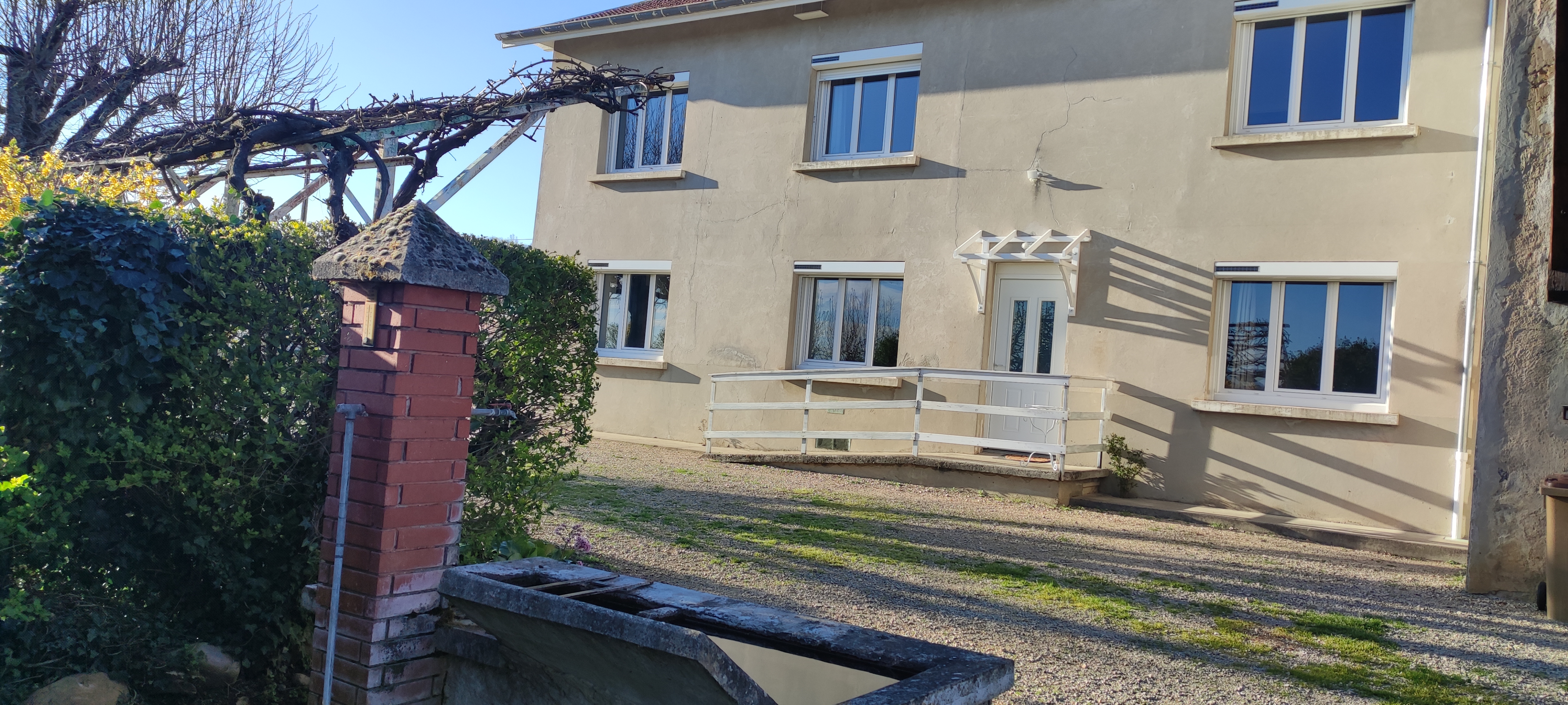 Maison entièrement rénoveé pour une capacité de 7 personnes, située à Porte-des-Bonnevaux (Nantoin). Cour fermée et ombragée avec un local de 40m² pour rangement (vélo, ski etc...)